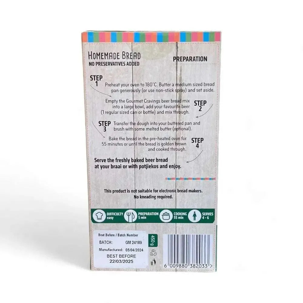 Elevate your home baking with the Gourmet Pre-Mix - Beer Bread Garlic & Herb Flavour. This artisanal blend brings together the rustic taste of stone-ground flour with the savory richness of garlic and herbs, delivering a mouthwatering loaf that's perfect for any occasion. Whether you're hosting a braai, enjoying a cozy dinner, or simply craving fresh bread, this mix is your go-to for easy, no-fuss baking. Just add your favorite beer or cider, mix, and bake for a fragrant, golden loaf that pairs wonderfully with everything from hearty soups to light salads.