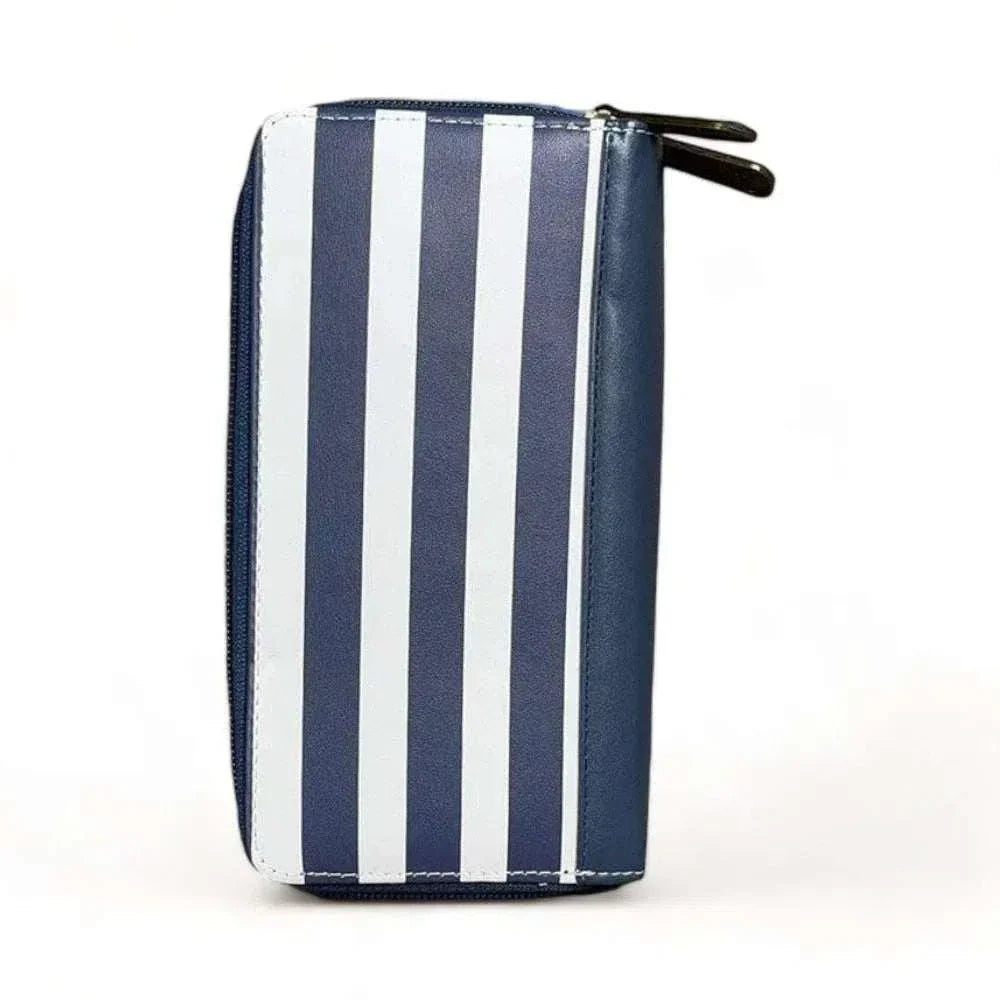 Cotton Road Large Wallet – PU Leather with Navy & White Stripes