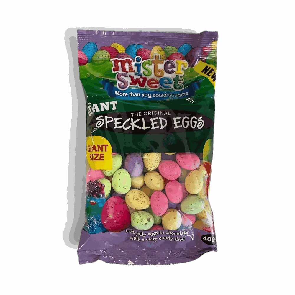 Satisfy everyone's sweet tooth with Mister Sweet's Speckled Eggs, now available in a convenient 400g pack. Order yours today and make every moment a little sweeter with Mister Sweet's.