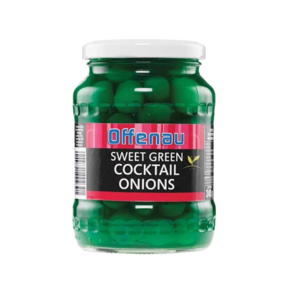 Offenau Cocktail Onions - GREEN 340g Jar provides 340g of a tangy, yet sweet, pickled onion that can enhance any meal or drink! Delivering a crunchy texture and zesty flavor, these cocktail onions are perfect for adding a vibrant touch to your favorite recipes.