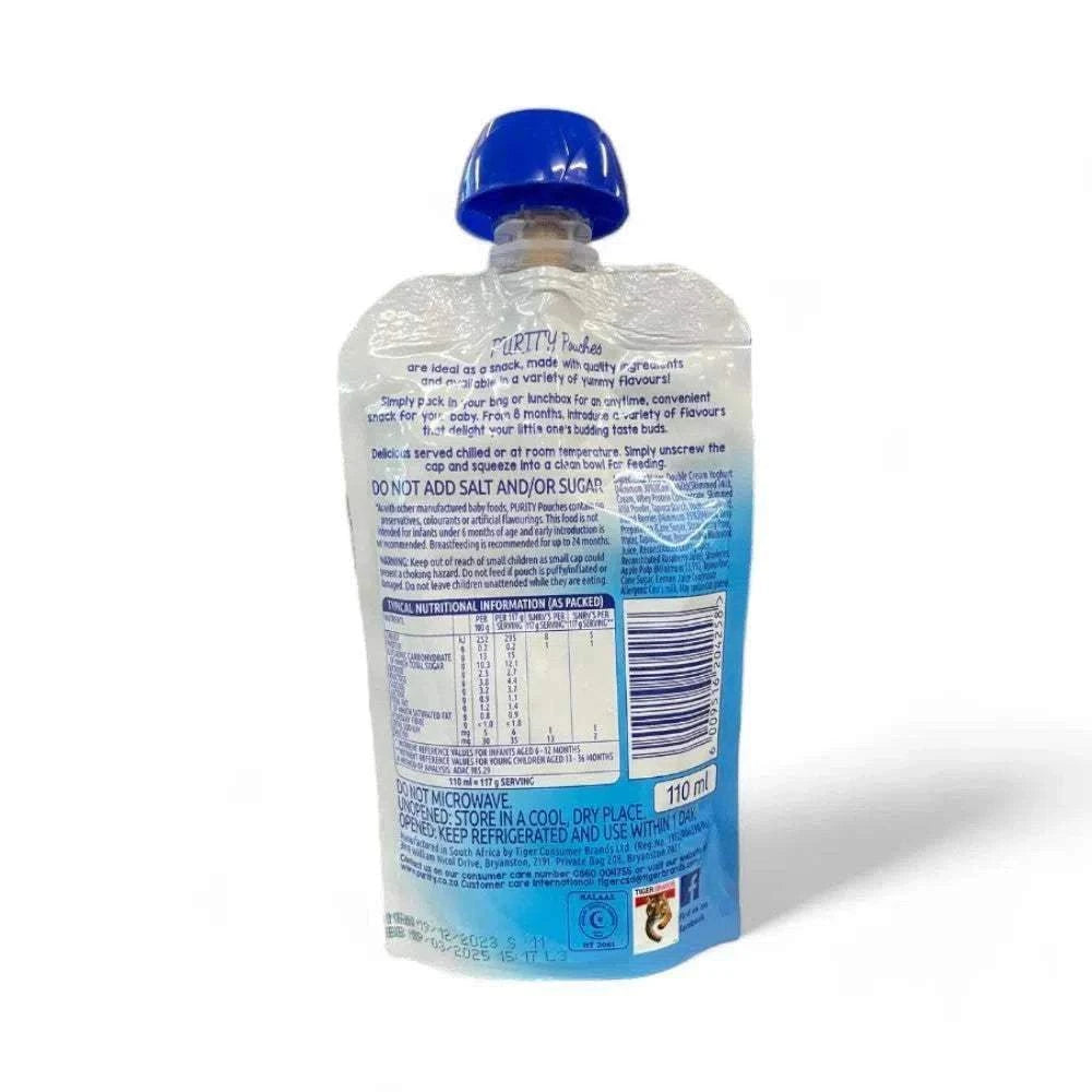 Purity Dairy with Mixed Berries & Apple combines the richness of double cream yogurt with the natural sweetness of mixed berries and apples. Ideal for babies from 8 months, this snack is free from preservatives, colorants, and artificial flavors.