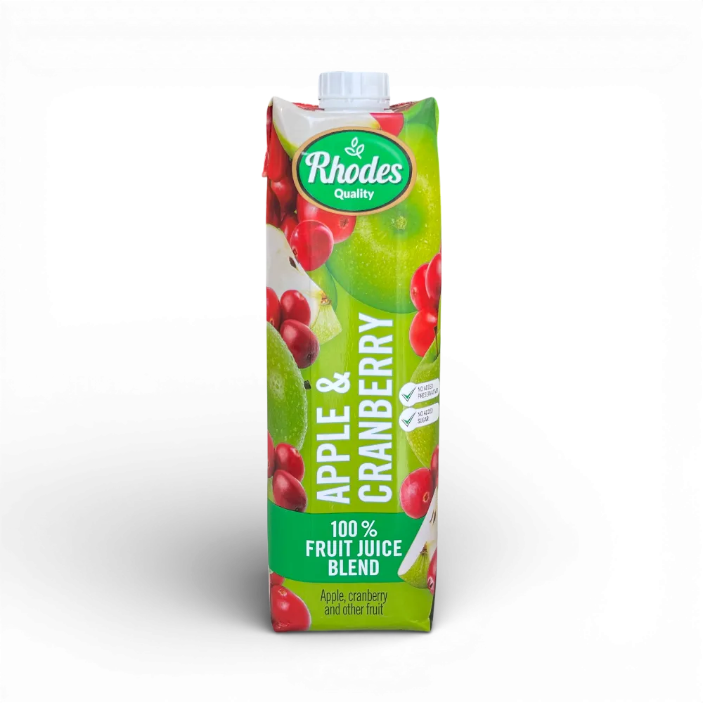 Rhodes 100% Fruit Juice – Apple & Cranberry – 1 Litre
