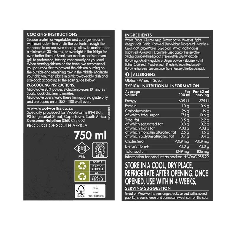 Woolworths Smokey BBQ Braai Marinade – 750ml