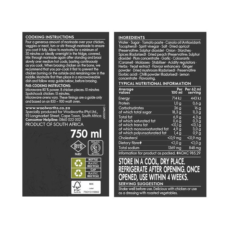 Woolworths Original BBQ Braai Marinade – 750 ml